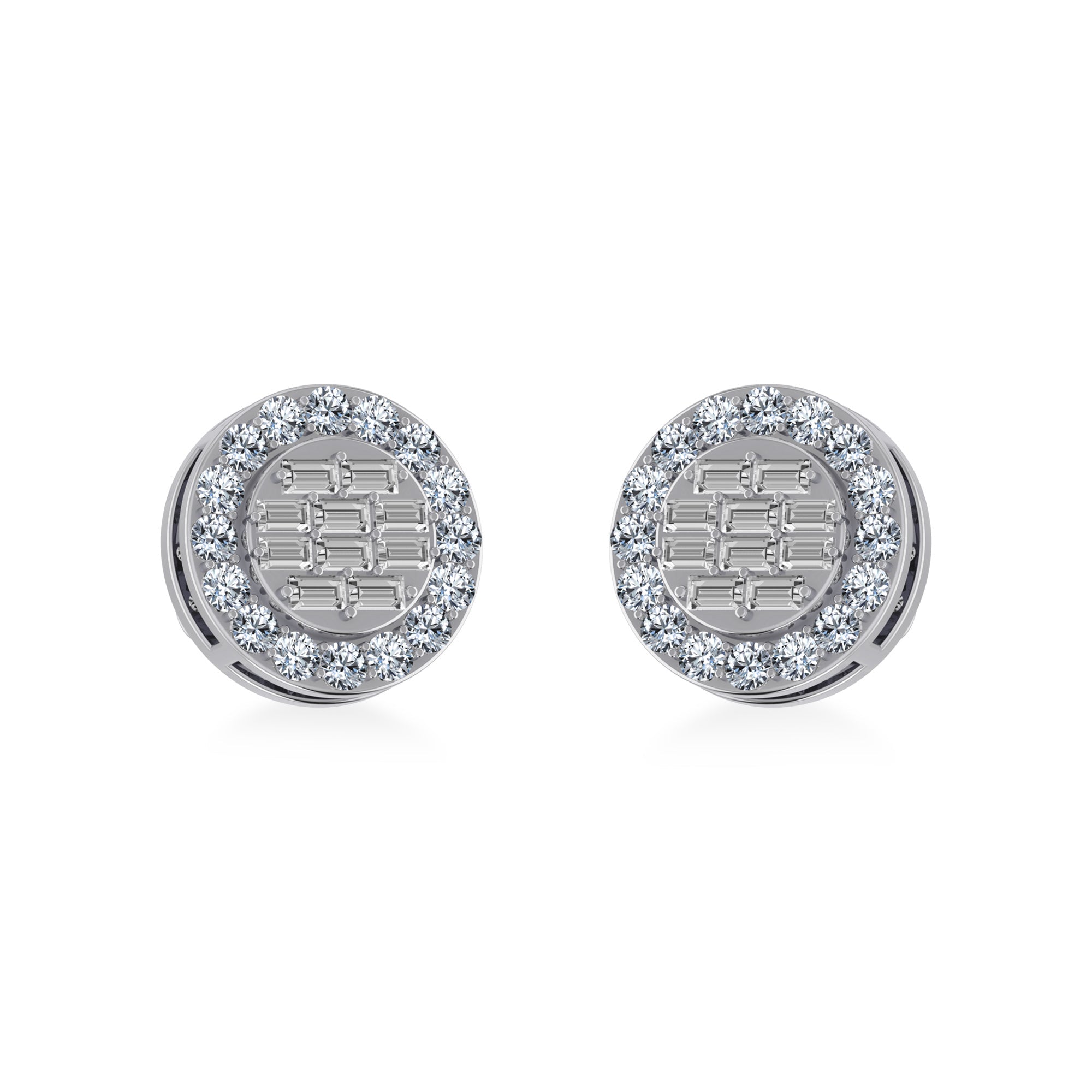 14K White Gold Round Baguette Diamond Halo Stud Earrings 1/2 Cttw